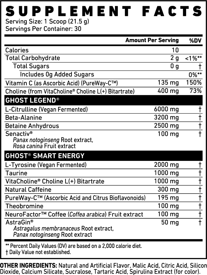†Compared to original GHOST LEGEND® pre-workout formula.